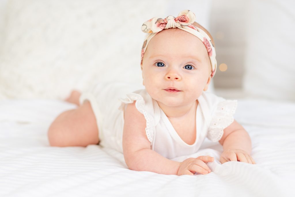 Portrait Of Happy Baby Girl Playing With Toys In Playroom